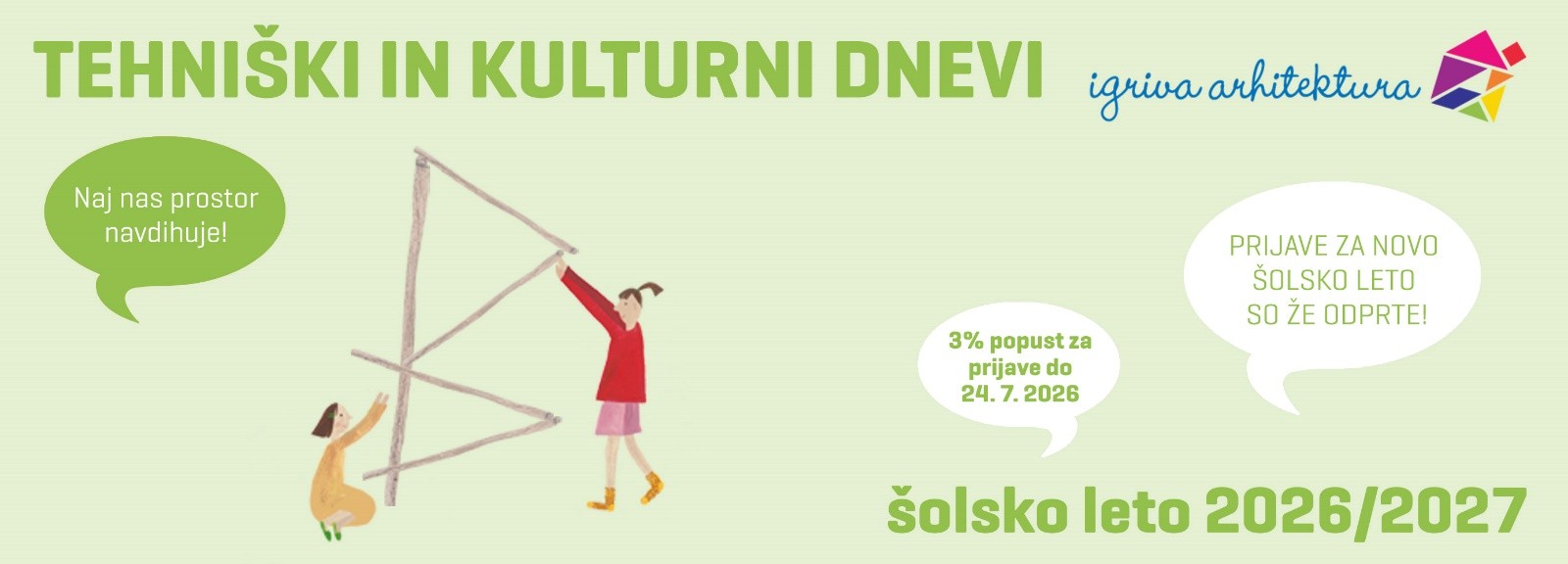PRIJAVE SO ŽE ODPRTE – za prijave do 24. julija 2026 vam priznamo 3 % popust.