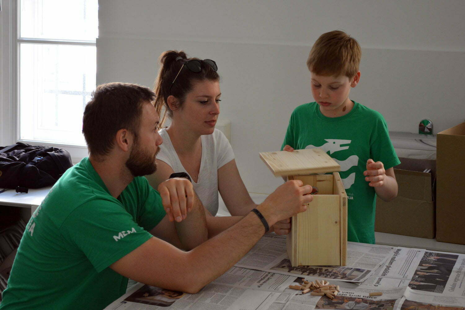 Prišla je pomlad in ptički potrebujejo gnezda za svoje mladičke. Arhitekta Maša Mertelj in Matic Vrabič sta izdelala načrt za ptičje gnezdilnice, v podjetju Riko Hiše pa so nam izrezali kose, ki smo jih potrebovali za sestavljanje gnezdilnic. S pomočjo lesenih moznikov in lesnega lepila smo jih povezali in sestavili gnezdilnice. Dovolj hitrim in spretnim je ostal še čas za barvanje, eno gnezdilnico smo na koncu še obesili na drevo ob Muzeju sodobne umetnosti in ptičkom podarili nov prostor za gnezdenje.
